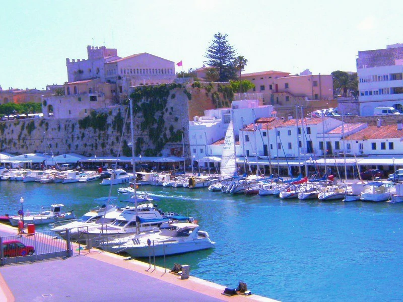 Ciudadela: El puerto de Ciudadela (o Ciutadella de Menorca), la segunda ciudad, en población, de la isla. Este puerto es natural y al fondo de la imagen podemos ver parte de la ciudad, que tuvo que ser reconstruida después de que los otomanos la atacaran y se llevaran a parte de su población para pedir rescate. |