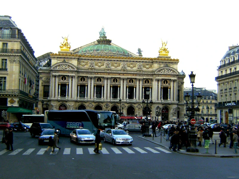 Ópera de París: También conocida como Ópera Garnier o Palacio Garnier, ya que fue al arquitecto Charles Garnier a quien Napoleón III le ordenó su construcción. Es uno de los edificios más reconodibles de París. Su estilo es neobarroco y fue inaugurada en 1875 para que albergara la Academia Nacional de Música. | |