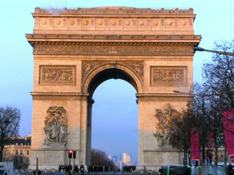 Arco del Triunfo: Esta obra, hecha para conmemorar la victoria napoleónica en la batalla de Austerlitz, se sitúa en el extremo oeste de la avenida de los Campos Elíseos. A sus pies se encuentra una llama encendida para señalar la tumba del Soldado Desconocido y en sus muros interiores se recogen los nombres de 558 generales del ejército francés. |