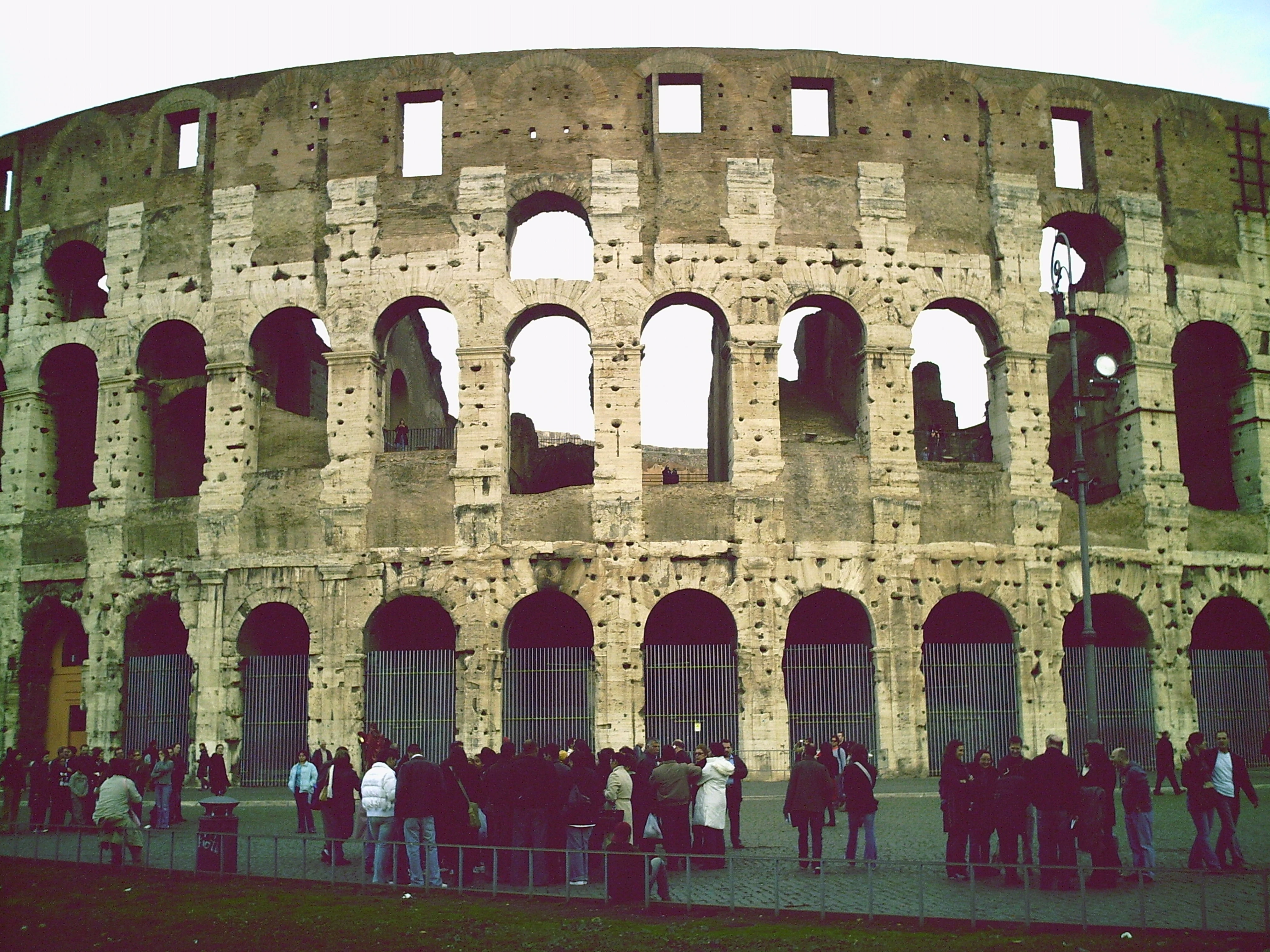 Colisseo: Sin duda uno de los monumentos romanos más reconocible. Data del siglo I y en el origen fue conocido como Anfiteatro Flavio. Su nombre actual se lo debe a una estatua del Coloso de Nerón que se encontraba cercana al, ahora sí, Coliseo y que no ha llegado hasta nuestros días. El Coliseo es Patrimonio de la Humanidad desde 1980 y forma parte de Las Siete Maravillas del Mundo Moderno. Su estado se debe, no sólo al paso del tiempo, a los terremotos que ha soportado. | |