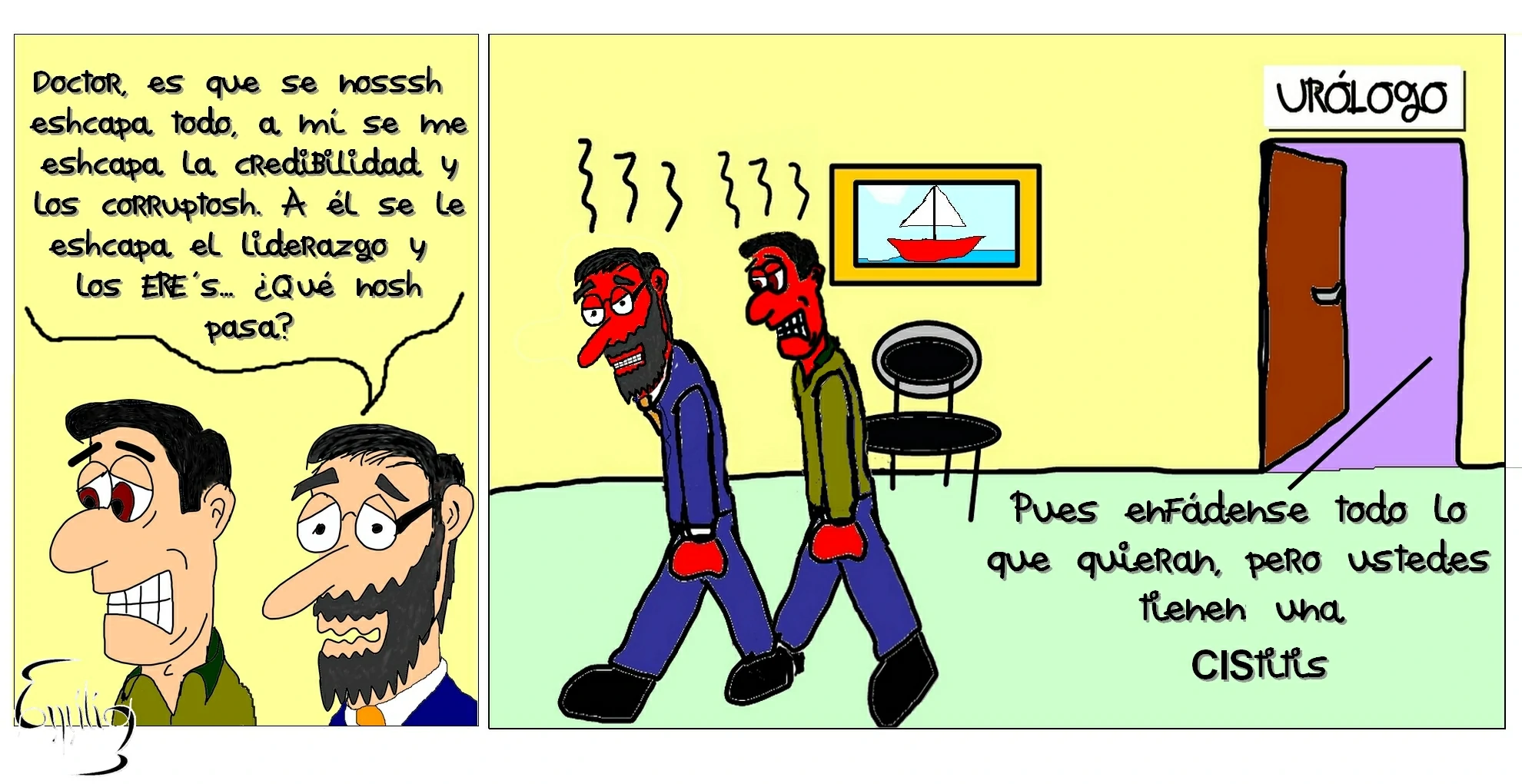 Durante más de un año colaboré con una publicación digital con una columna de opinión y para ilustrar esos artículos, durante un tiempo al menos, me encargué de hacer yo mismo las ilustraciones que acompañaban esos artículos. Aquí recojo algunas de ellas. |